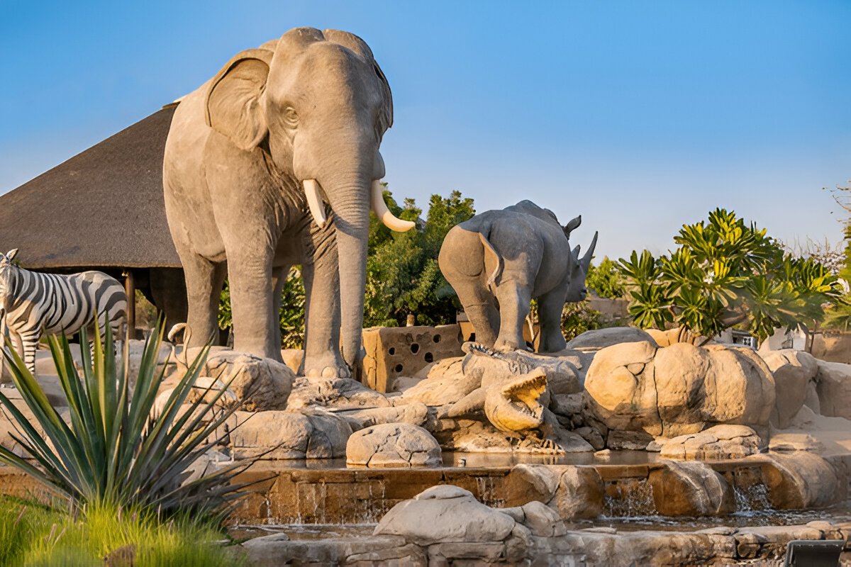 Walk through the air-conditioned Wildlife Walk to meet Bengal Tigers, Amur Leopards, and rare monkey species such as Blue Monkey, Tufted Capuchin, and Velvet Monkey. Discover the Bird Park, home to Laughing Kookaburra, African Grey Parrots, and Red-Winged Macaw. Visit other zones like the Animal Paradise, Flamingo Park, Reptile House, and Petting Zoo.