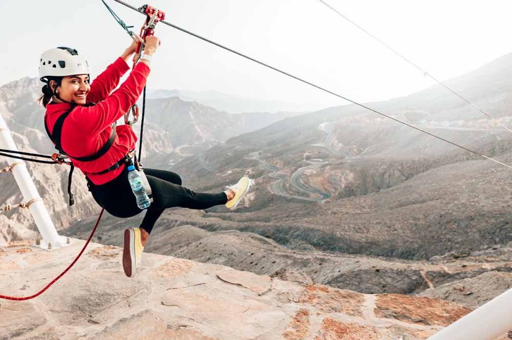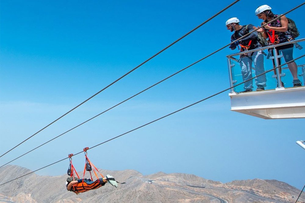 Get ready to embark on an unforgettable journey across the longest zipline in the world. The Jebel Jais Zipline offers a pulse-pounding ride at a speed of around 120 km/hr from an altitude of 2,830 meters. As you glide through the air, you’ll feel the rush of wind and the thrill of height, making it a truly extraordinary experience.